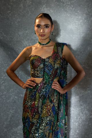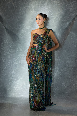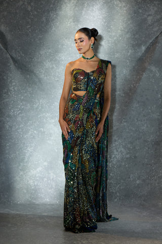 A sequenced saree with multicoloured tones, looking stunning and elegant at the same time