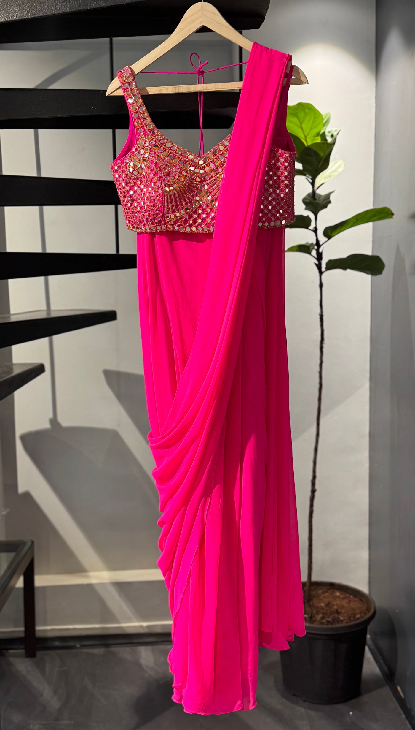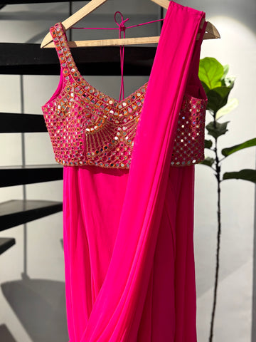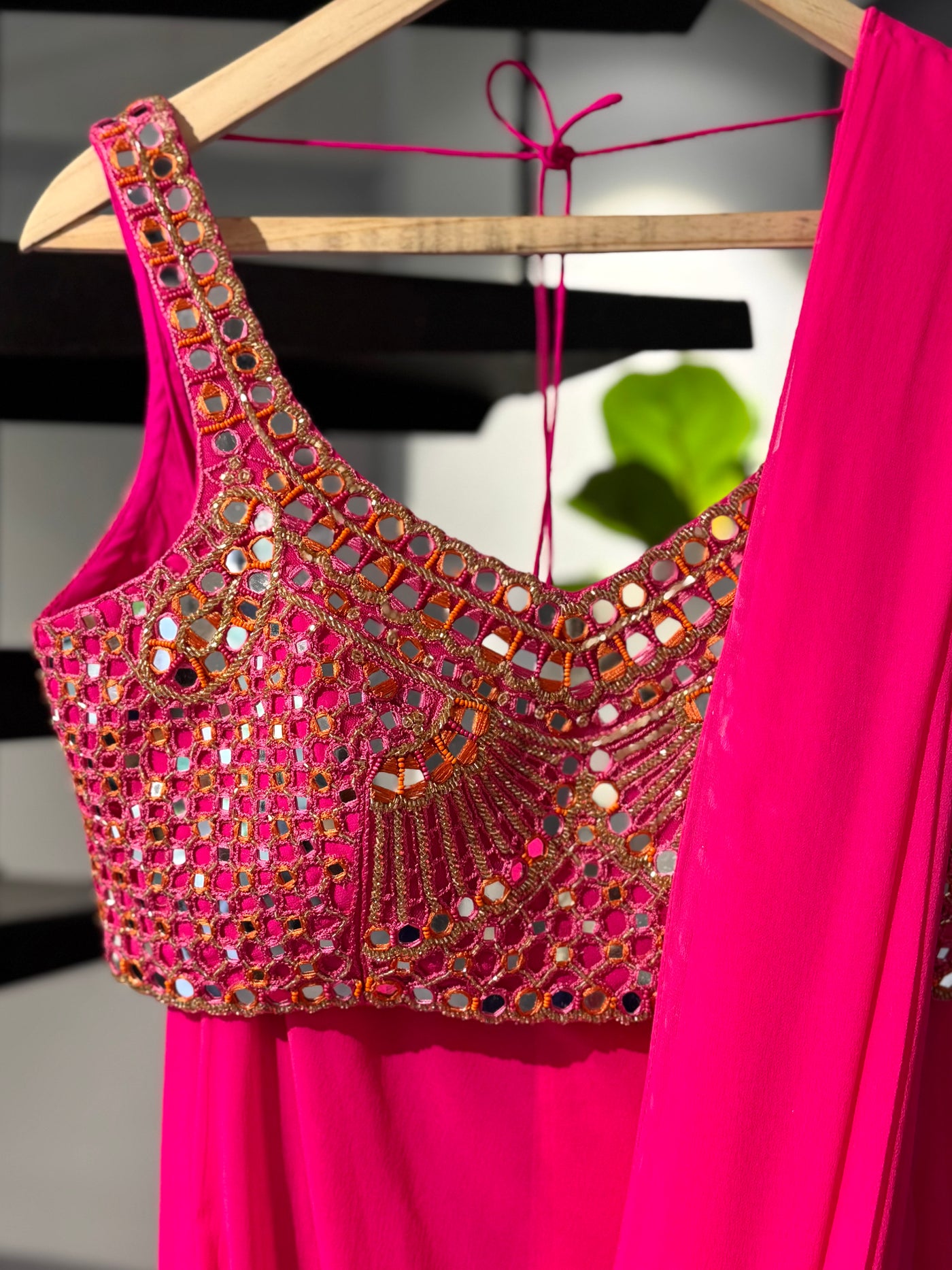 A dazzling play of mirror work meets the bold charm of fuchsia — Radiant Fuchsia is designed to turn every entrance into a grand one. Perfect for cocktail nights, festive soirées, and when you simply want to glow brighter than the lights around you
